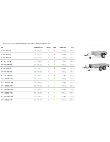 REMORQUE 500 – 750 KG GTT 750 2 ESSIEUX 2M50 sans option