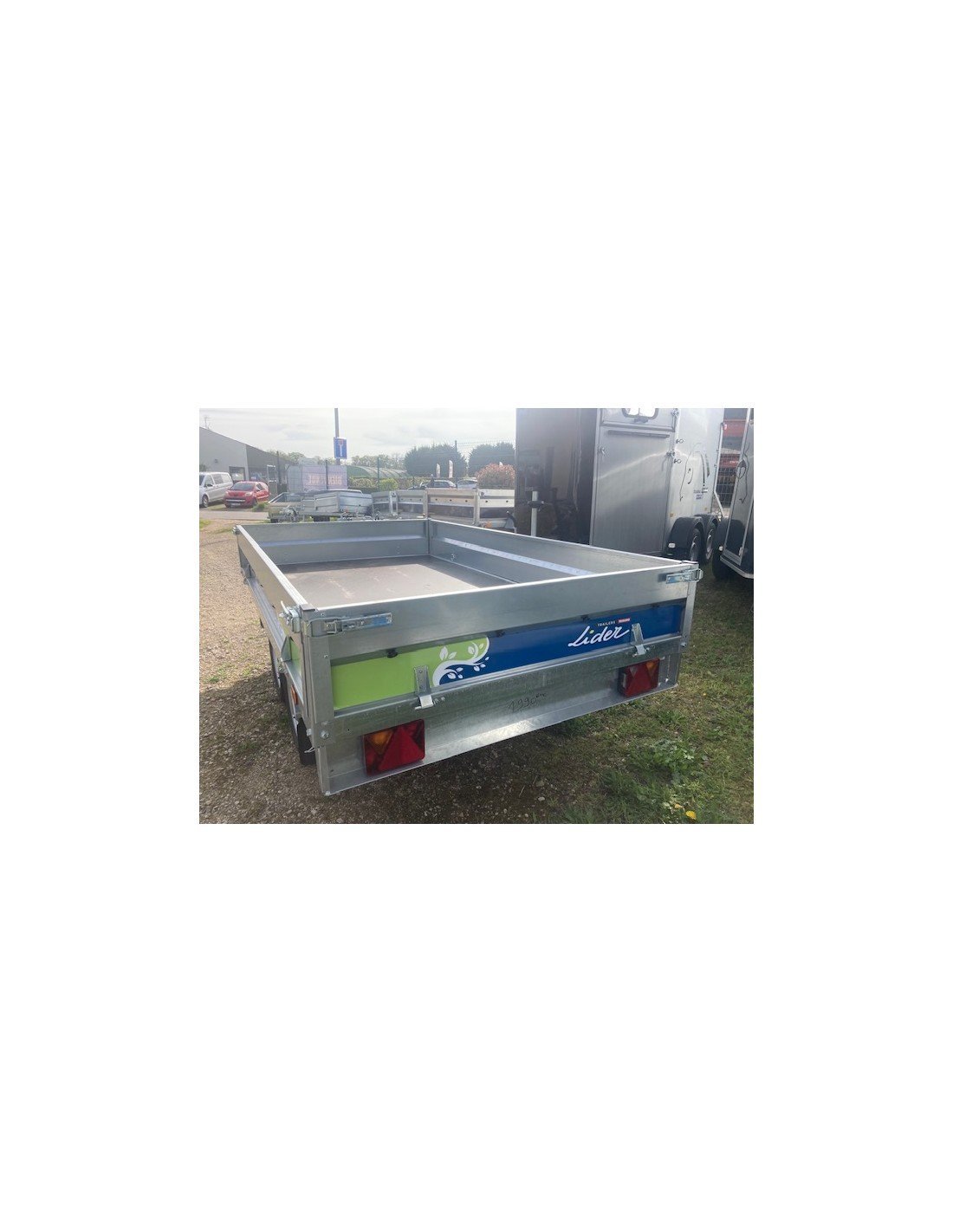 Remorque Lider avec plusieurs PTAC possible en option – 500 – 600 – 650 – 750 kg. Remorque roues dessous avec deux essieux de 750 Kg