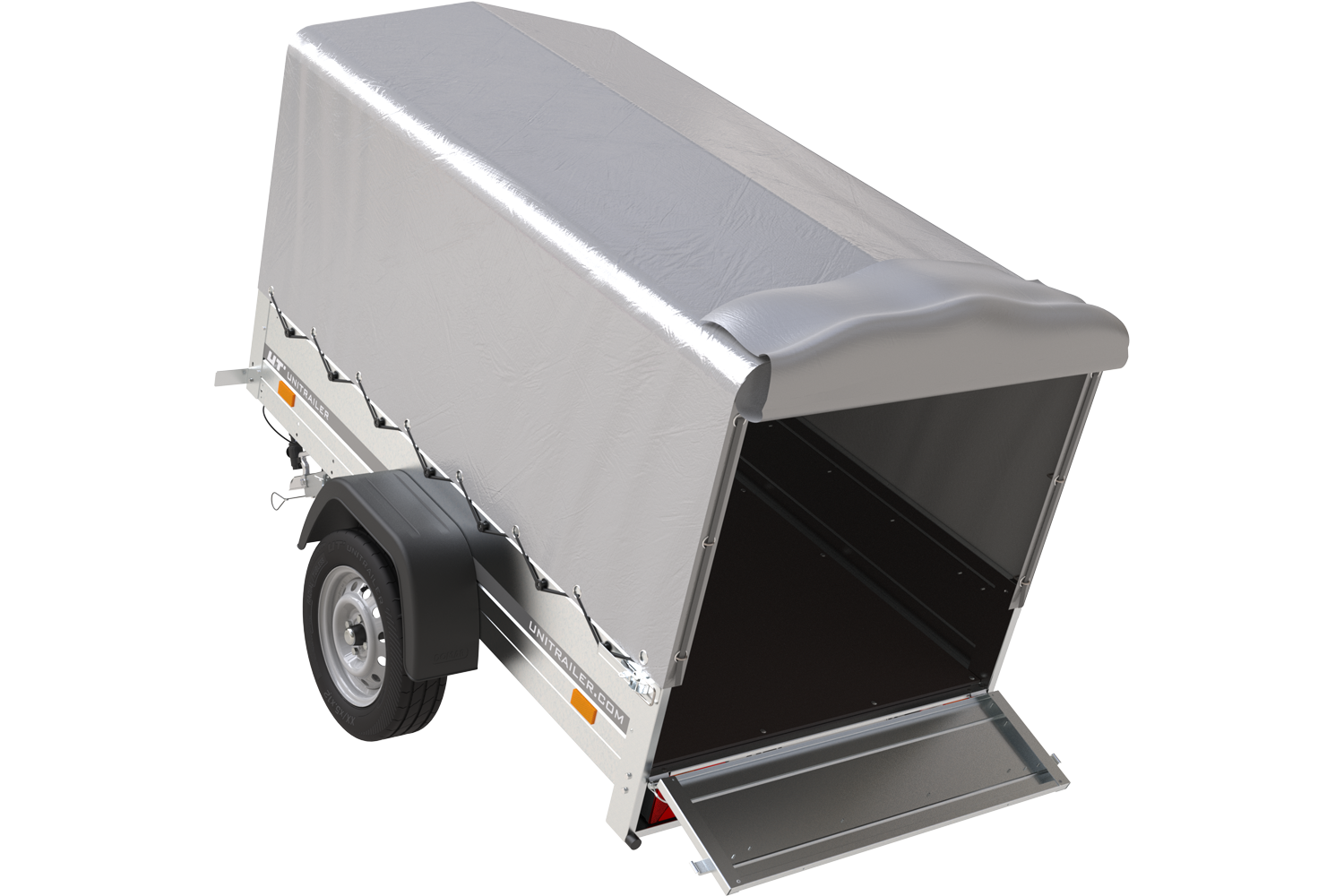 Remorque avec bâche haute et arceau UNITRAILER GARDEN TRAILER 200 KIPP possède un timon rabattable. C’est une remorque solide faite en acier galvanisé. Elle peut être place sur sa ridelle arrière, ce qui permet de la stocker de manière très facile dans le garage ou à côté de la maison. Grace au timon pliable, le déchargement de tous cotés de la remorque des produits en vrac est très facile.