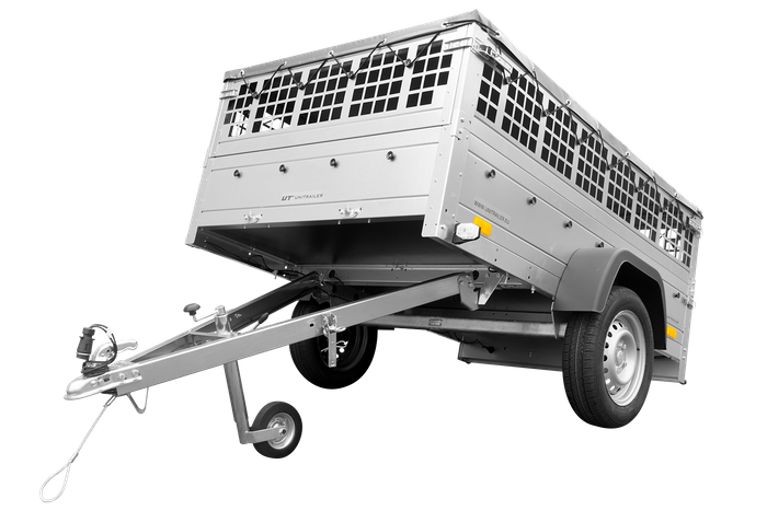 - Remorque voiture utilitaire à benne basculante UNITRAILER du modèle Garden Trailer 201 KIPP avec timon pliable. Surface de transport de 200×125 cm. Hauteur totale de la surface de transport de 70 cm. PTAC 300-750 kg. Livrée directement à votre domicile.